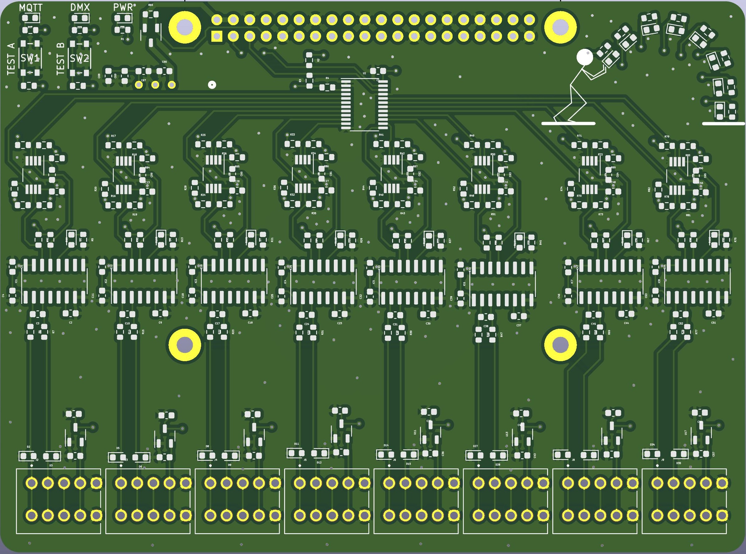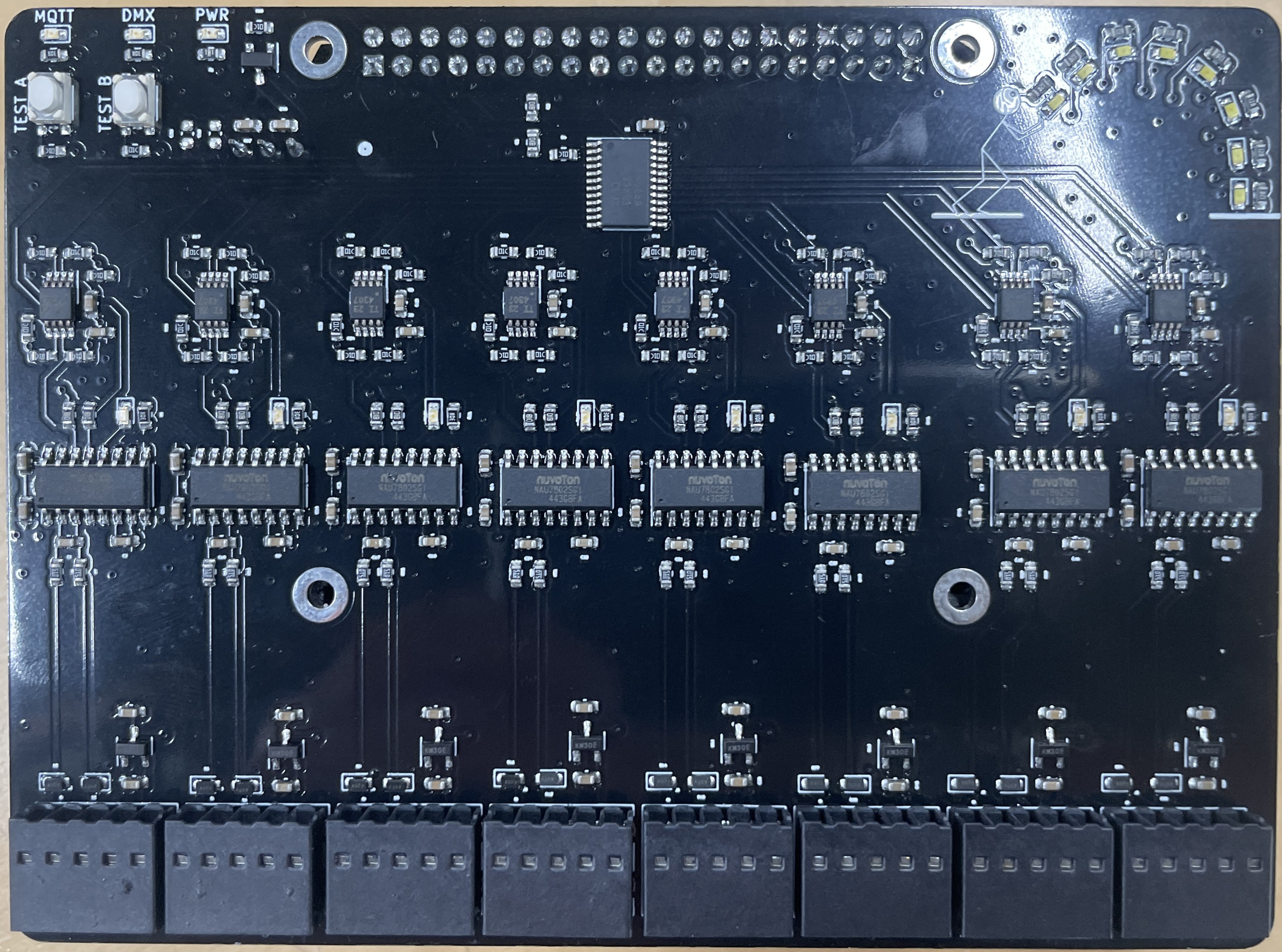 Custom software written in C++ and Python allows for realtime data acquisition from an array of 8 load cells. The load cells are connected to a custom data acquisition board that runs on top of a Raspberry Pi 4. As the pressure readings from the sensor are recorded and processed the lighting animations update to reflect the interaction state.